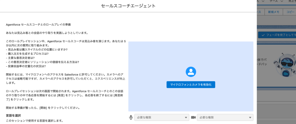 営業者は、商談のフェーズに応じて、セールスピッチの練習またはロールプレイングを選択できます。セールスコーチは、一度に最大 5 分間のビデオ録画を許可し、その後、詳細なレビューを行います。