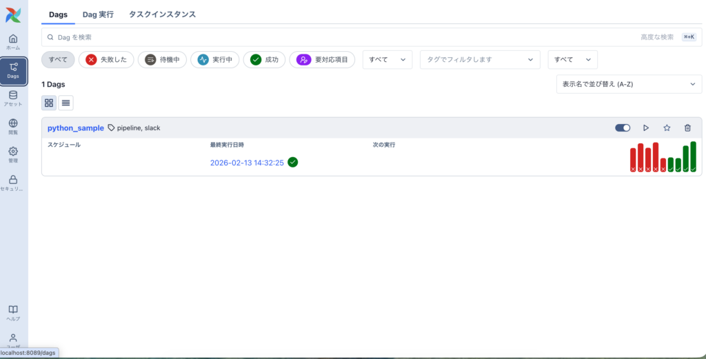 ブラウザでアクセスしてサイドバーのDagsでDagを開きます
