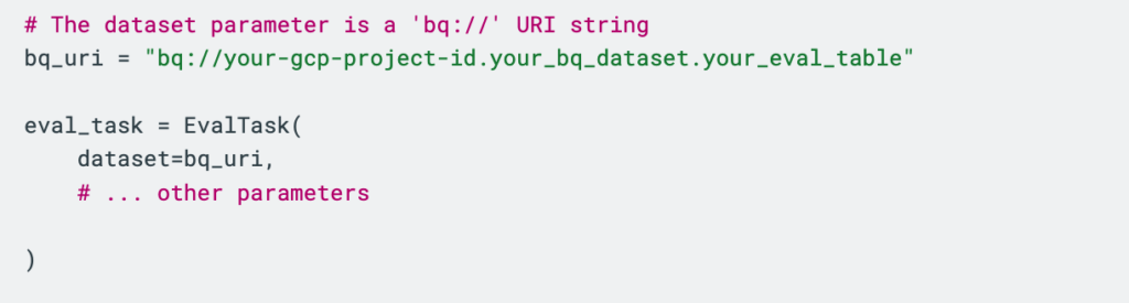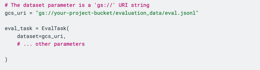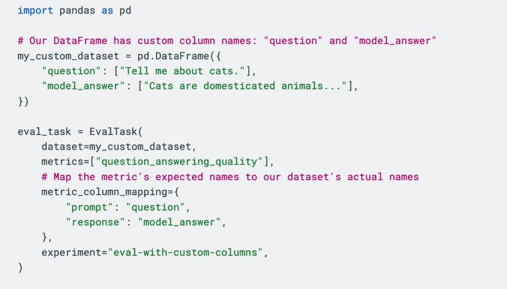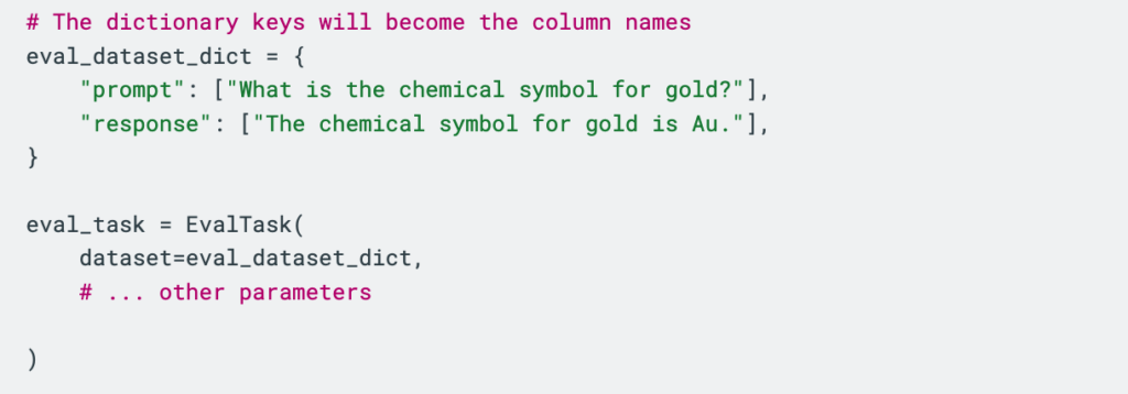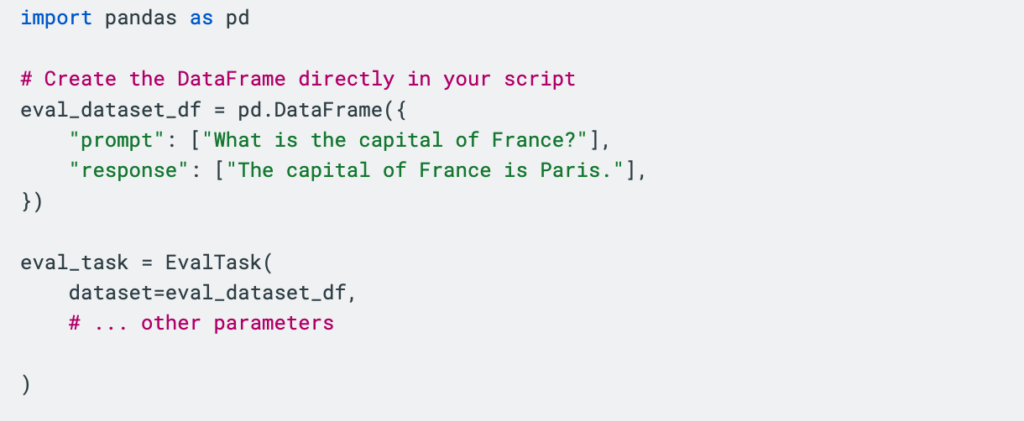 EvalTask は柔軟で、複数の方法でデータを受け取れます。代表的な方法を見ていきましょう。