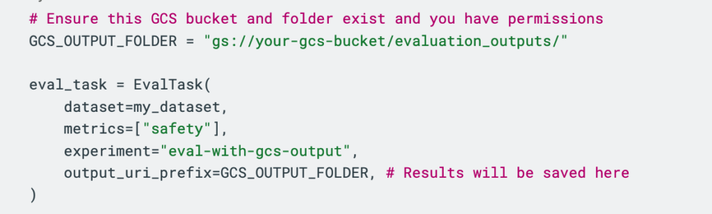 詳細な評価結果やメトリクスを GCS に保存できます。