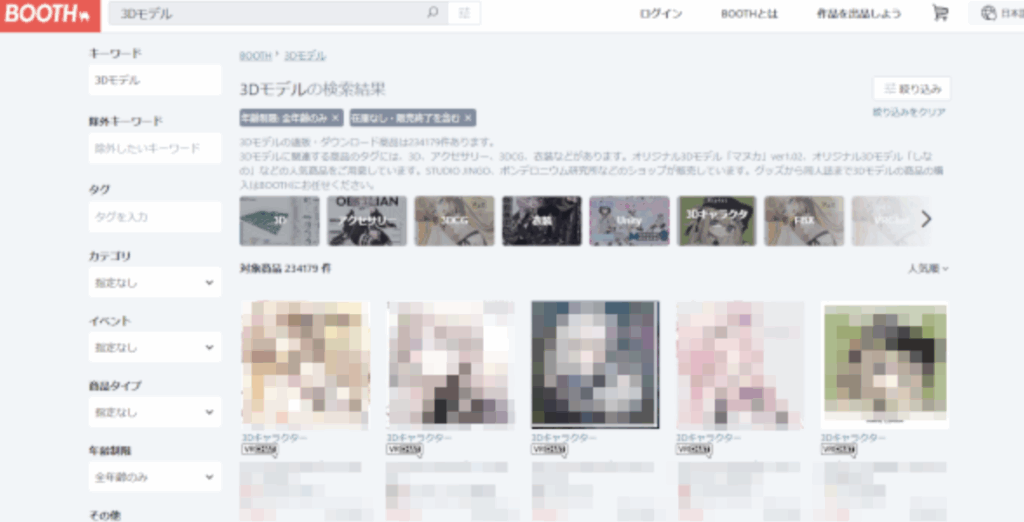 今回は有料、無料モデル両方とも配布している booth.pm を紹介します。