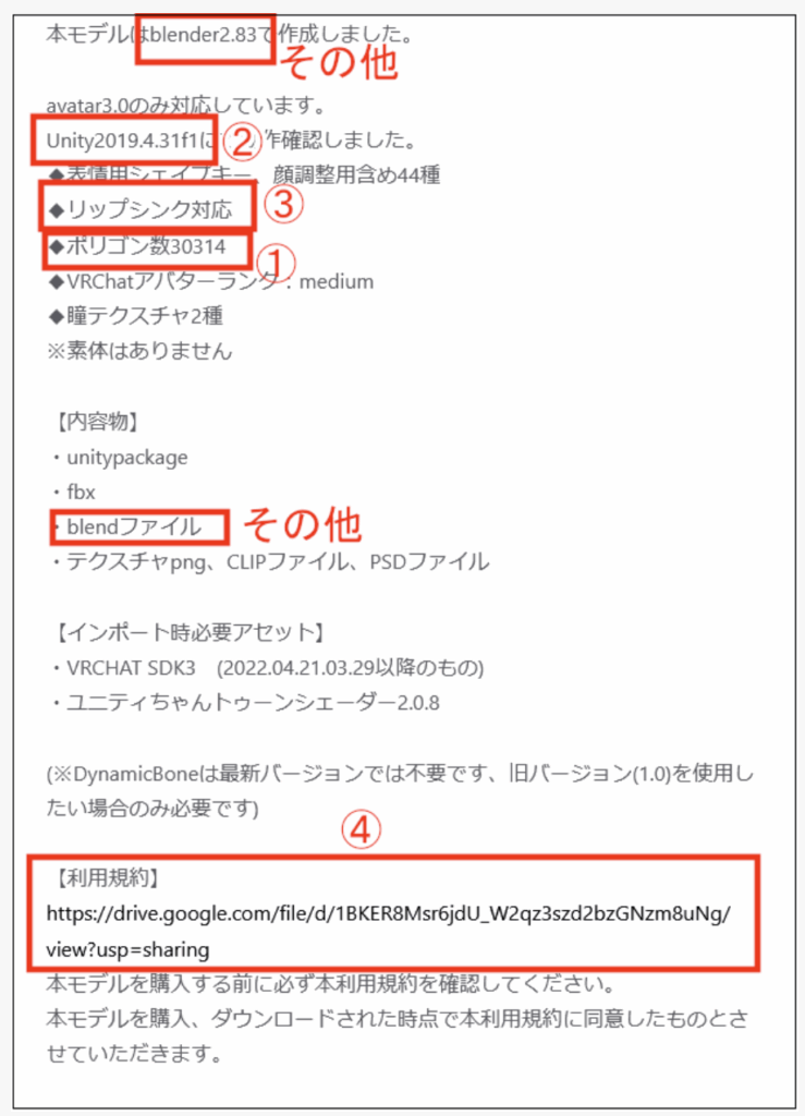 ダウンロードしたモデルを Blender(3D モデル作成ソフト)で修正する場合、blend ファイルがないとかなり難しいです。fbx ファイルはある程度代用できますが、いろんな不具合が発生しますので、blend ファイルがあるかどうかによってはモデルを編集できる確率がグーンと上がります。また、Blender モデルのバーション互換性が非常に微妙ですので、バーションの記載があった場合大変ありがたいです。
