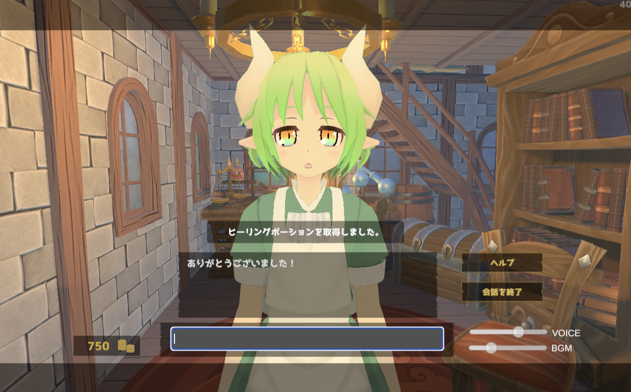 下記のように会話でやりとりをして、ポーション屋である NPC からポーションを購入することができます。