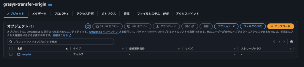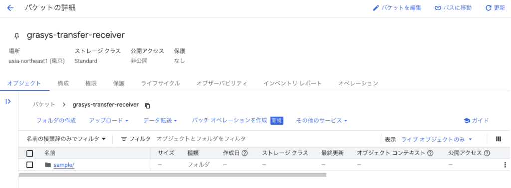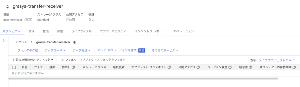 - バケットまたはフォルダ:grasys-transfer-receiver