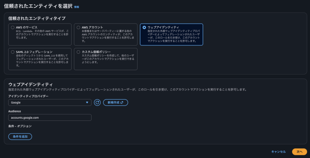 - 認証のオプション:ID連携のためのAWS IAMロール